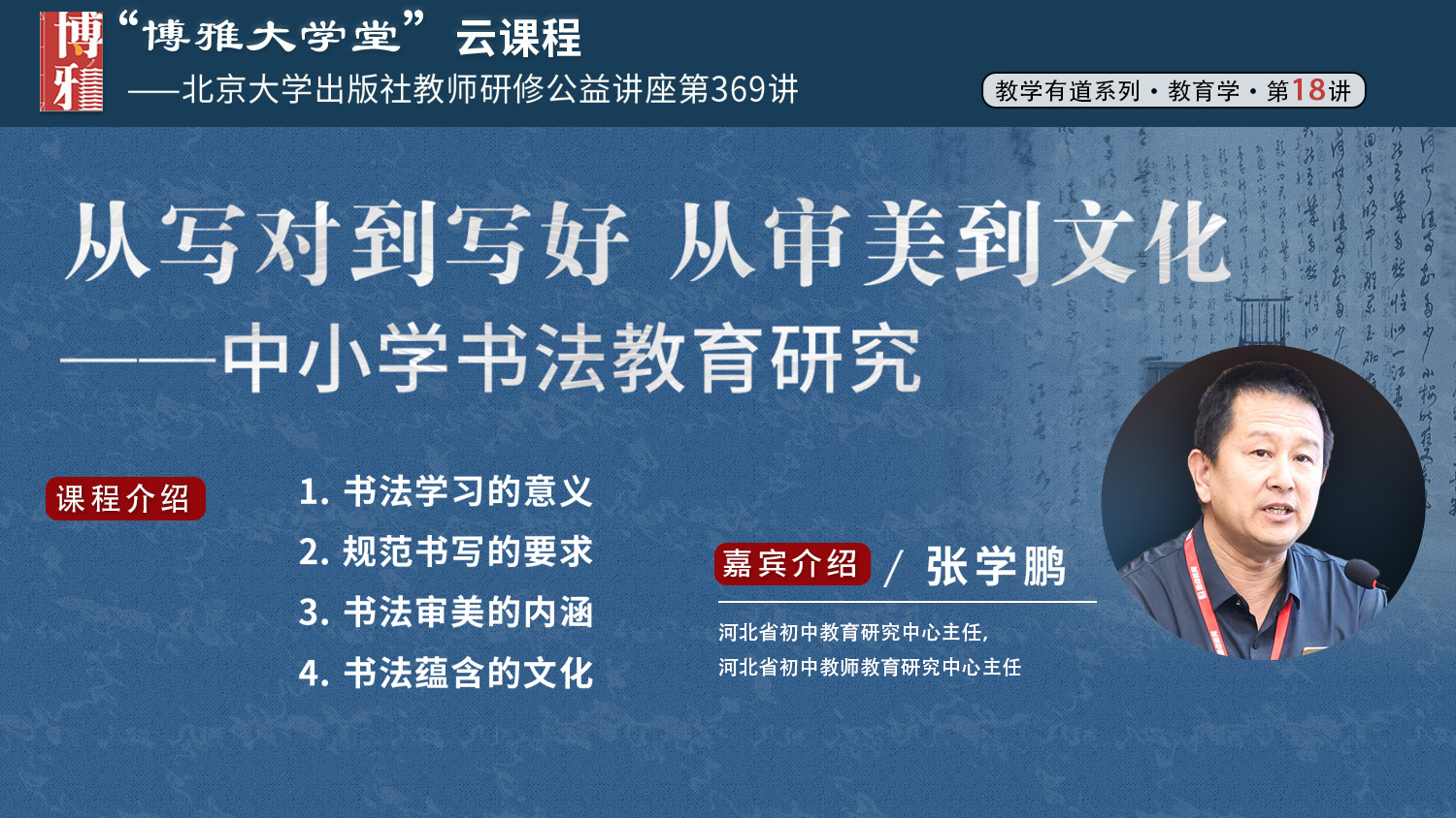 博雅大学堂云课程 张学鹏 从写对到写好 从审美到文化——中小学书法教育研究