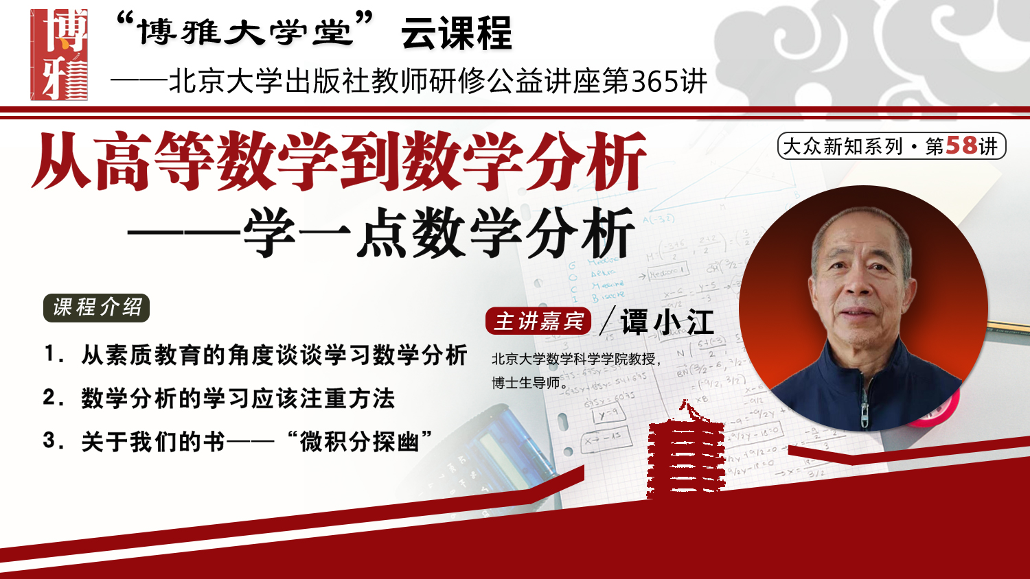 博雅大学堂云课程 谭小江 从高等数学到数学分析——学一点数学分析