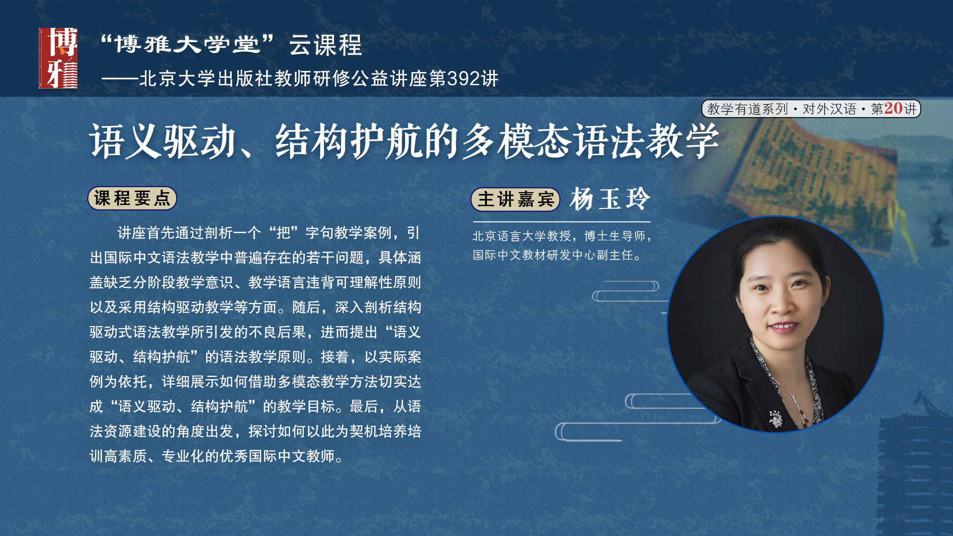 博雅大学堂云课程 杨玉玲 语义驱动、结构护航的多模态语法教学